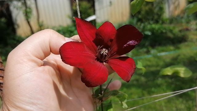 Клематис 'Руж Кардинал' (Rouge Cardinal) - первый бутон 2024 в нашем саду.