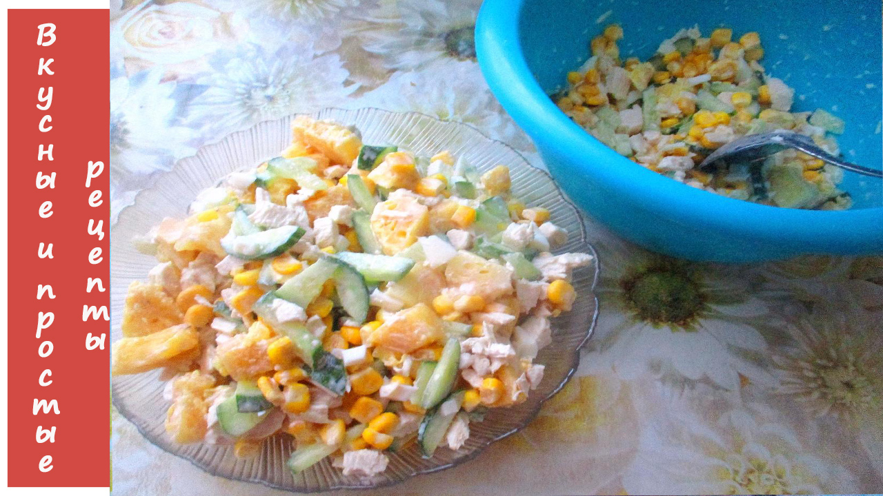 СОЧНЫЙ И ВКУСНЫЙ САЛАТ ИЗ КУРИЦЫ КУКУРУЗЫ И АНАНАСА