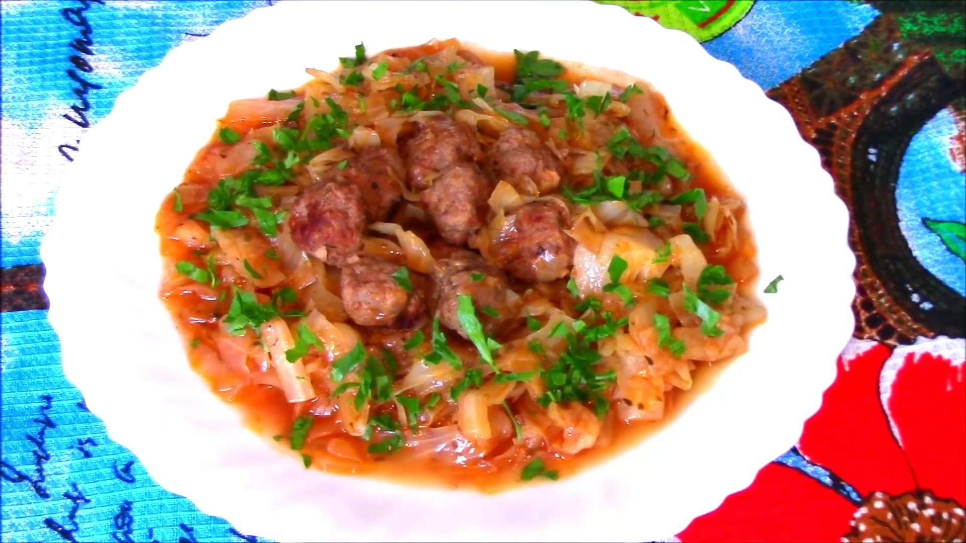 Тушеная капуста с фрикадельками.