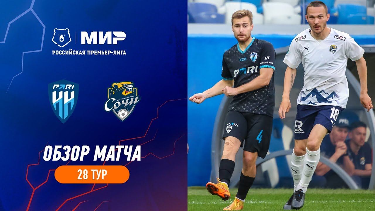 Pari NN beats FC Sochi (4-0) Goals: Alexandrov 52’, Rybchinskiy 62’, Krotov 86’, Kakkoev 90+3’ Pari NN: Nigmatullin, Stotsky, Kakkoev, Gotsuk, Alexandrov, Kalinsky, Zhigulev, Rybchinskiy, Maiga, Sevikyan, Suleymanov FC Sochi: Adamov, Terehov, Margasov, Makarchuk, Miladinovic, Drkušić, Burmistrov, Noboa, Yusupov, Kravtsov, Melkadze Subscribe to the Official Channel of @premierliga Website: https://eng.premierliga.ru Vkontake: https://vk.com/rpl Twitter in English: http://twitter.com/premierliga_en Twitter in Russian: http://twitter.com/premierliga TikTok: http://tiktok.com/@premierliga Telegram channel: https://t.me/premierliga