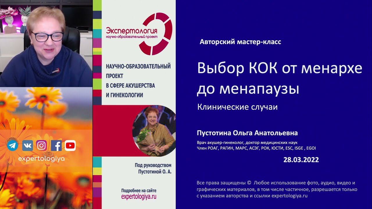 Выбор КОК от менархе до менопаузы l Пустотина О. А.