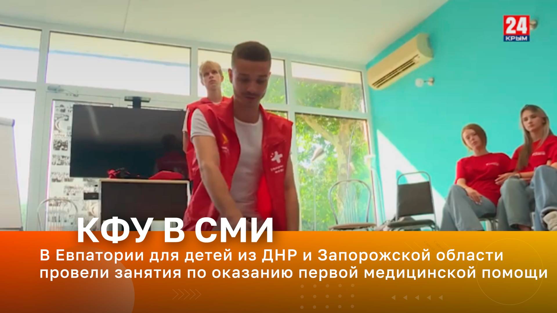 «Крым 24». В Евпатории для детей из Донецкой народной республики и Запорожской области провели занятия по оказанию первой медицинской помощи, а ещё – лекцию о здоровом образе жизни и основных правилах гигиены. Наставниками стали студенты Крымского Федерального университета. Этим летом евпаторийский лагерь принял около 300 детей из возвращённых исторических регионов. Лекции, тесты и мастер-классы специалисты Крымского Федерального университета проводили для участников каждой смены.