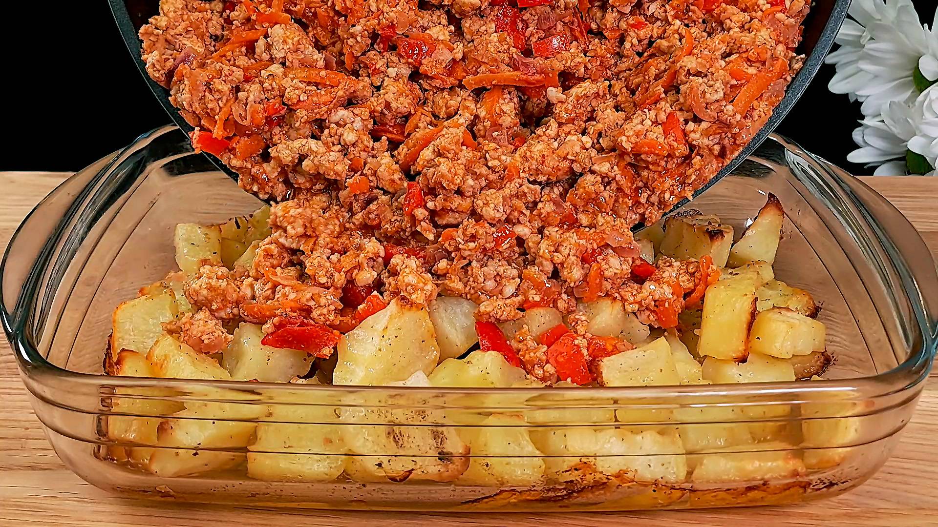 Ингредиенты для рецепта: 5 картофелин. соль, черный перец, сушеный молотый чеснок. оливковое масло. оливковое масло с перцем чили. растительное масло. 1 луковица. 1 морковь. 1 красный болгарский перец. помидоры черри. 500 грамм фарша. 50 грамм томатного соуса. 5 яиц. соль. 200 грамм сыра моцарелла. Подписывайся на канал и делись видео с друзьями. Также у меня на канале еще очень много вкусных рецептов, и еще больше рецептов ждет вас впереди. Вконтакте - https://vk.com/vkusnierecipe Одноклассники - https://ok.ru/group/70000000861442 Дзен - https://dzen.ru/vkusnierecipes https://dzen.ru/isrecipe Весь музыкальный контент, использующийся в видео на данном канале размещён на основании лицензии Creative Commons 4.0 вариант лицензии CC0 (https://creativecommons.org/licenses/by/4.0/) с медиатеки, где не требуется указания авторства.