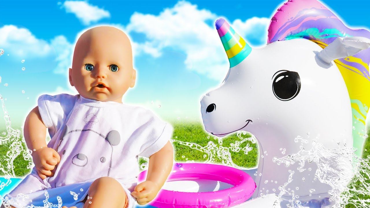 Видео куклы онлайн - Беби Анабель в бассейне Единорогов! - Весёлые игры дочки матери с Baby Born
