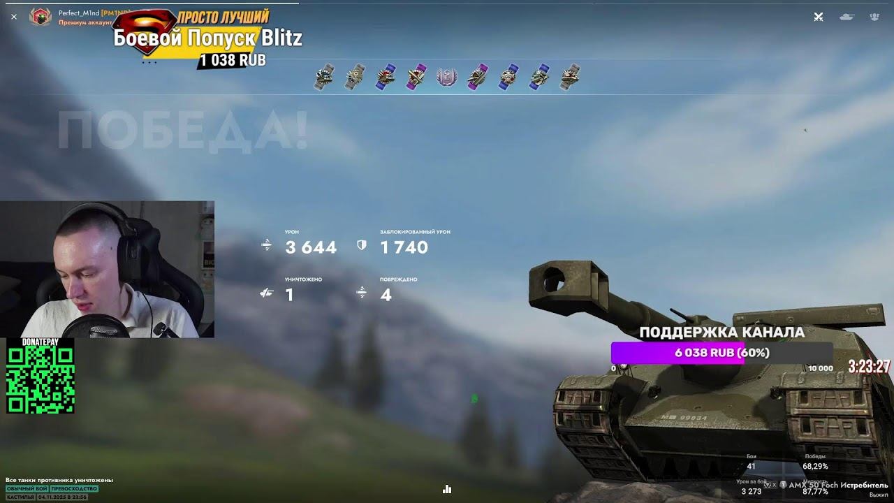 Работают танки на заказ (1 бой = 150р) Поддержать канал (системы донатов): 1. https://donatepay.ru/don/pm1nd 2. https://www.donationalerts.com/r/pm1nd 3. любимая КАРТА СБЕРБАНКА - 4817 7601 5407 8525 4. Для PayPal - https://donatty.com/pm1nd ❤️ Подписывайтесь на мой Telegram, чтобы не пропустить важные новости: https://t.me/pm1nd Стримы также идут на ВК Видео: https://live.vkvideo.ru/perfect_m1nd/ Группа ВКонтакте: https://vk.com/pm1nd С помощью системы донатов можно сделать стрим веселым и интересным. С каждым донатом можно отправить музыку. А за разную сумму донатов можно добавить интерактива: 1. Заказать бой на танке - 150₽, приятным бонусом могу объяснить, как играть на нем в деталях (указать в сообщении) 2. Подробный анализ (чек) вашей статистики и уровня игры — 300 ₽ 3. Анализ вашего реплея с моими комментариями — 300 ₽ Если будет что-то смешное или интересное — сделаем короткое видео (шортс). Для гарантированного шортса — 3000 ₽. 4. Взвод со мной — 888 ₽ Около 40 минут совместных боёв и нагиба рандома! 5. Вступление в клан без очереди — 1800₽ Гарантированное место в клане без лишних вопросов. 6. Закажи танк для следующего стрима — 10000 ₽ Например, прокачаю любимый или нелюбимый танк. Возможен мастер на нем! 7. Прокачка танка до 2 отличительных отметок — 20000 ₽ Для тех, кто хочет сразу много боёв на любимом танке. 8. Заказать мастера на танк во время тематического стрима Нужно закрыть донат-полоску (на экране). Пример: полоска — 5555 ₽, уже собрано 4444 ₽, осталось 1111 ₽ для заказа мастера. 9. Мастер на обычном (не тематическом) стриме - 5000 ₽ 10. Странные заказы танков (стоковый СТ-1, ехать кормой вперед и т.п.) - 2000₽ бой Важно! На мастера нельзя заказывать следующие танки: Бураск, Калибан, ААТ60, VZ-55, МБ-64, Минотавр, TS-60, Протей. Тариф 15 000 ₽ доступен на: B-C Roland, Challenger, ХМ66ф, Об 268/4, Т-49 (крупный калибр), T95E6, B-C 25T, WZ-121, AMX Defender. Гайд, как задонатить: https://youtu.be/LUzMMiJpQYg?si О себе: меня зовут Алексей, мне 30, живу в данный момент в Казани. Играю в танки с 06.07.2014. Начинал с планшета, перешел на ПК в последние 3-4 года. ️Мой игровой ПК: Процессор: Intel Core i7-13700KF Материнская плата: MSI MAG Z790 TOMAHAWK WIFI ОЗУ: Corsair Vengeance 2×16 ГБ RGB DDR5 7000 MHz Блок питания: Deepcool PQ850M, 80 PLUS GOLD Накопитель: Samsung 970 EVO Plus 1 ТБ NVMe M.2 Система охлаждения: Deepcool LT720 360mm трёхвентиляторная Видеокарта: RTX 4080 16 ГБ MSI Ventus 3X Корпус: PANTEKS ETHOO PRO 2 Клавиатура: Cidoo V87 Мышь: Razer Basilisk V3 PRO Наушники: Asus ROG Delta S Animate #TanksBlitz #ТанкиБлиц #ТанкиСтрим #ТанкиБлицСтрим #PM1ND