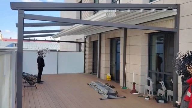 Тентовая автоматическая пергола Decolife для террасы многоквартирного дома