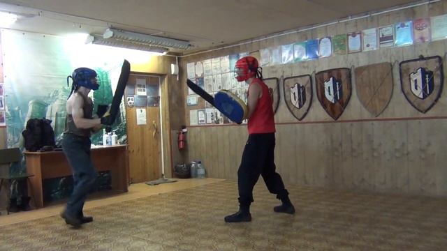 Видео спаррингов с гуманизированными макетами тесака и щита.