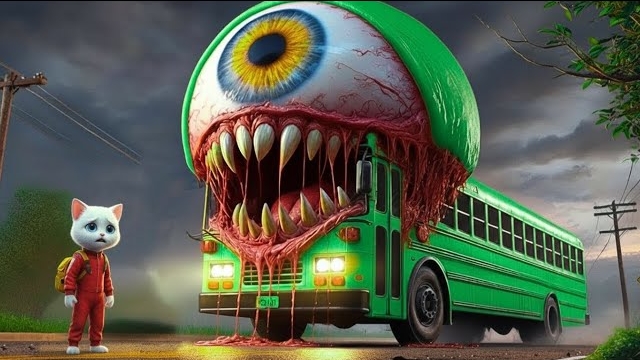 Котенок столкнулся с мутировавшим монстром школьным автобусом по дороге в школу