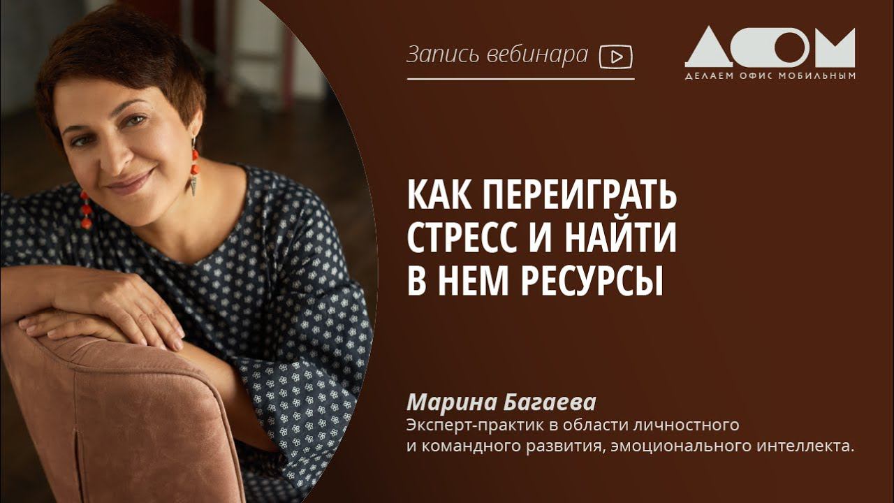 Как оставаться в ресурсе, научиться управлять стрессом и жить в удовольствие, осознанно выбирая свое состояние – рассказывает эксперт-практик в области личностного и командного развития, эмоционального интеллекта Марина Багаева. 00:00 - Видеоэкскурсия по МГУУ 2:15 - Вступительное слово Сергея Анатольевича Журихина 3:48 - О теме вебинара 4:30 - Представление спикера 5:10 - Почему стресс? Актуальность темы 8:10 - “Все свои мероприятия я начинаю с обещаний..” 8:40 - Стресс - это реакция на мысли, и он появляется из-за того, что зная, как сделать правильно, вы все равно все делаете наоборот. 9:05 - О чем поговорим сегодня? 9:44 - Какие у вас сейчас отношения со стрессом? 12:50 - Физиология стресса 16:50 - Измерение температуры стресса 22:38 - Как снизить стрессовую реакцию? (подход расслабленной концентрации) 27:23 - Помогает ли стресс для повышения производительности? 28:58 - Давление vs вызов - в чем разница? 30:38 - Как найти ресурс? 48:57 - 6 техник и упражнений для восполнения ресурса 1:00:05 - 5 техник дыхания 1:10:28 - Что почитать на тему стресса и управления им? 1:11:18 - Сколько времени нужно, чтобы выработать рефлекс здоровой реакции на стресс? 1:12:52 - Нужен ли кто-то, чтобы помогать контролировать ситуацию? 1:13:54 - Как понять, что стресс повержен? 1:15:15 - Кто больше подвержен стрессу? 1:16:52 - С каким стрессом чаще сталкиваются руководители - личным или профессиональным? 1:18:02 - Кто больше подвержен стрессу - те, кто работает с людьми, или изолированно? 1:19:45 - Итоги эфира, контакты спикера 1:20:59 - Анонсы следующих эфиров