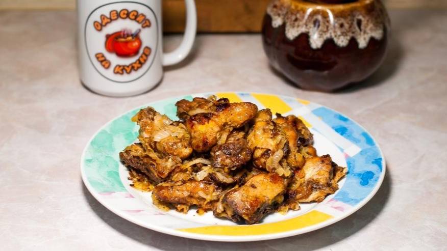 Куриные шашлычки с луком на сковороде
