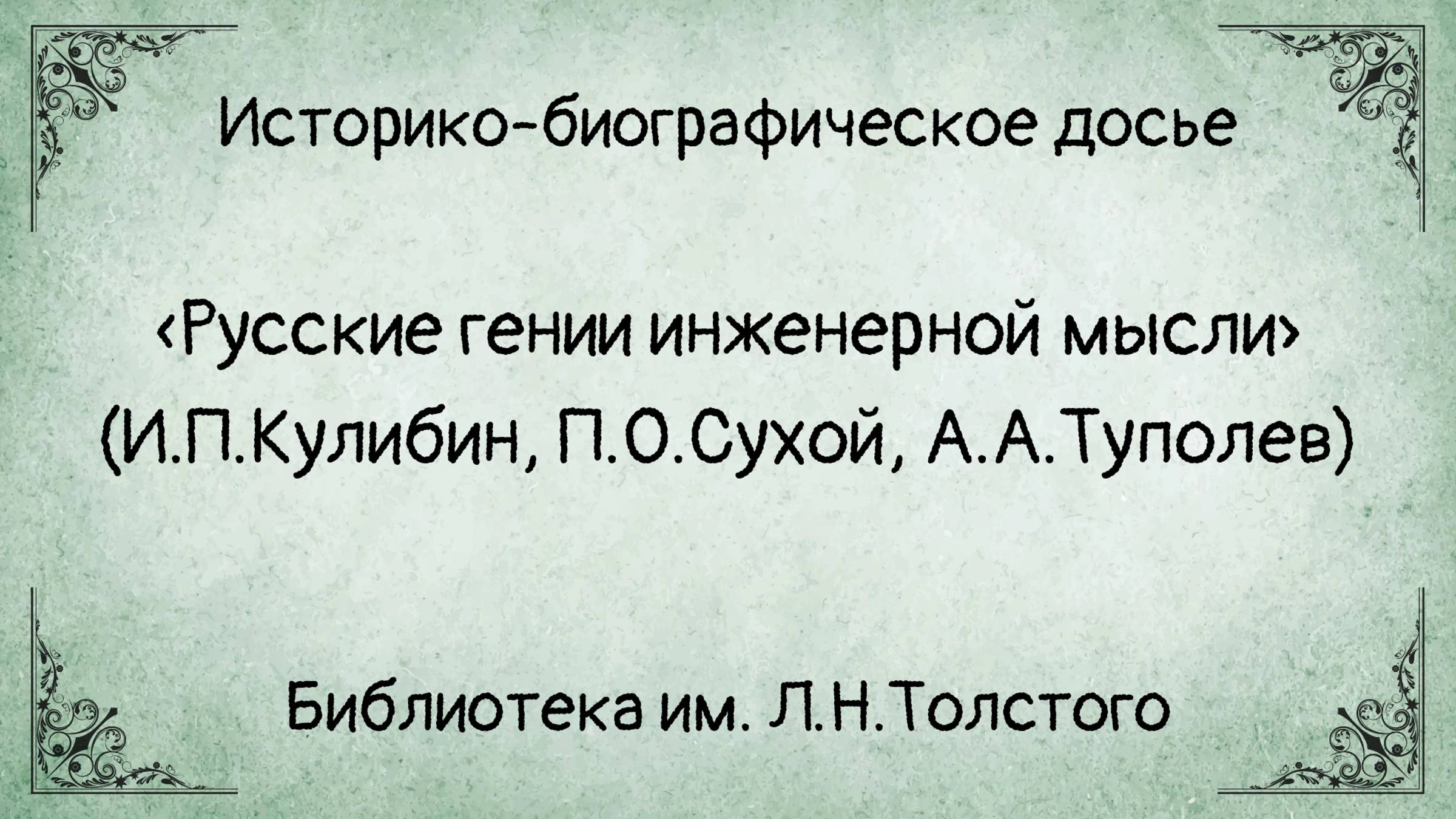 Историко-биографическое досье «Русские гении инженерной мысли»