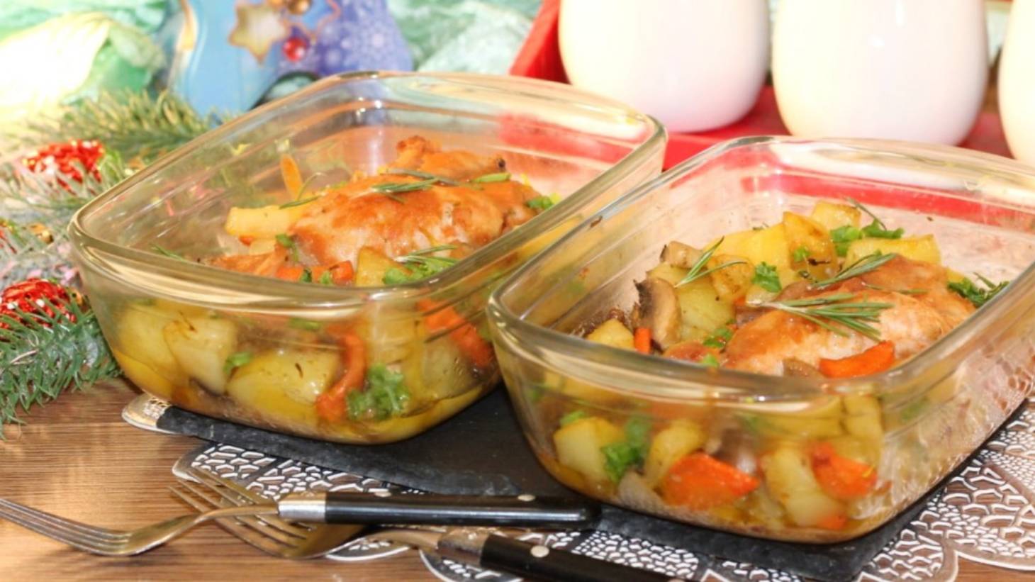 Очень вкусное и сытное блюдо для всей семьи. - Ингредиенты для «Горячее блюдо из индейки и овощей»: Индейка (крыло индейки - 2 шт) — 400 г Картофель — 5 шт Лук репчатый — 0,5 шт Морковь — 1 шт Шампиньоны (крупные) — 3 шт Масло растительное — 4 ст. л. Масло сливочное — 20 г Чеснок — 2 зуб. Лук зеленый (перья) — 4 шт Кетчуп (томатный или томатная паста 1 ст.л., тогда +1 щепотка сахара) — 2 ст. л. Молоко — 100 мл Приправа (1 ч.л для курицы + 1 ч.л. для овощей) — 2 ч. л. Укроп — 2 веточ. Перец черный Соль Время приготовления: 60 минут Количество порций: 2