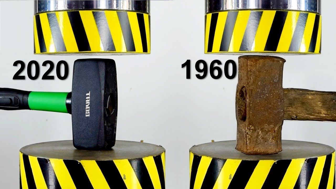 Let's compare objects from different eras with the help of a hydraulic press. Which items are stronger, old or modern.