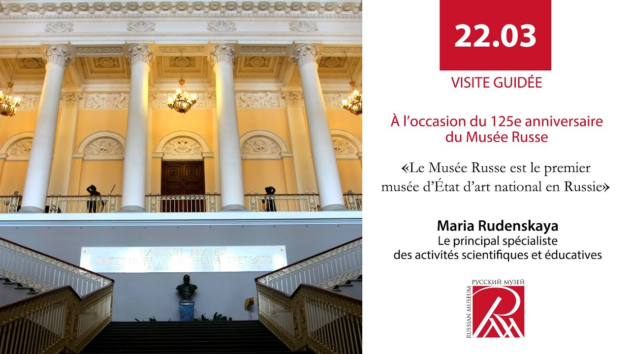 Le 22 mars 2023, Le Musée Russe, la Maison Russe à Bruxelles vous invite à une visite virtuelle du Musée Russe. Il y a 125 ans, en mars 1898, à Saint-Pétersbourg, capitale de l’Empire Russe, le Musée Russe de l’empereur Alexandre III, premier musée national des beaux-arts de Russie, a ouvert ses portes aux visiteurs. L’empereur Alexandre III a montré un grand intérêt pour l’art, estimant que « la diffusion de l’art est une question d’importance nationale ». La création du Musée Russe était un grand projet éducatif de l’empereur, déjà mis en œuvre par son fils, l’empereur Nicolas II. Le principal spécialiste des activités scientifiques et éducatives Maria Viktorovna Rudenskaya parlera des préparatifs qui ont précédé l’ouverture du musée. Comment le palais Mikhailovsky, l’ancienne résidence grand-ducale, qui abrite aujourd’hui l’exposition principale du musée Russe, a été transformé en service « Musée Virtuel Russe »? Comment la cérémonie solennelle du occasion de l’ouverture du premier musée d’Etat des arts en Russie a eu lieu? Les spectateurs verront des photographies et des documents anciens, feront une visite virtuelle des salles du musée et compareront l’exposition moderne du musée avec les salles du Musée Russe, telles qu’elles sont apparues devant les premiers visiteurs il y a 125 ans.