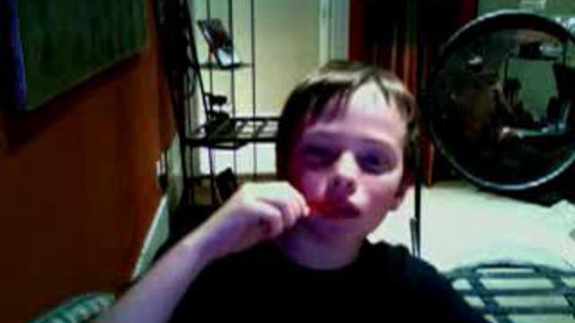 Мальчик прикалывается: лижет карамельку, изображая страсть.