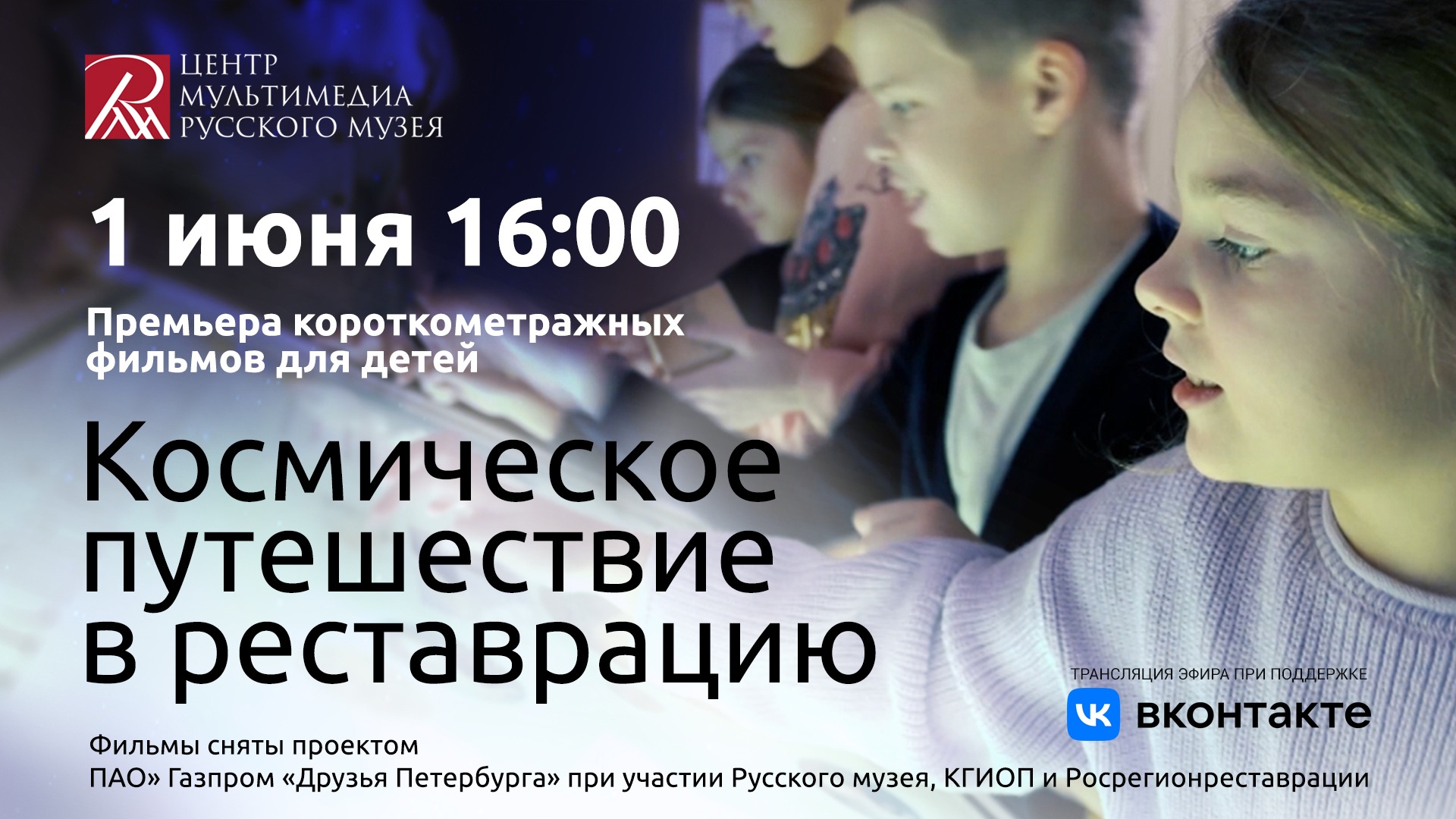 1 июня, в Международный день защиты детей состоится пресс-конференция и премьерный показ пяти короткометражных фильмов из серии «Космическое путешествие в реставрацию». Фильмы созданы при поддержке ПАО «Газпром» в рамках проекта «Друзья Петербурга» совместно с Государственным Русским музеем, Комитетом по государственному контролю, использованию и охране памятников истории и культуры Санкт-Петербурга и Российской ассоциацией реставраторов. Создатели фильмов приглашают ребят отправиться в воображаемый вояж по пяти космическим станциям планеты «Реставрация», каждая из которых таит в себе множество удивительных открытий. Как современные технологии позволяют реставраторам «обмануть» время? Можем ли мы сегодня заглянуть в далекое прошлое и как помогают нам в этом компьютерные технологии и специальная оптика? Почему Санкт-Петербург называют «музеем под открытым небом»? Зачем нужно сохранять и восстанавливать старинные здания? Какие правила соблюдают реставраторы в своей работе и может ли осколок фарфора рассказать собственную увлекательную историю? Как склеивают старинные вазы и как восстанавливается знаменитая Янтарная комната в Царском селе? Об этом и многом другом узнают маленькие путешественники.