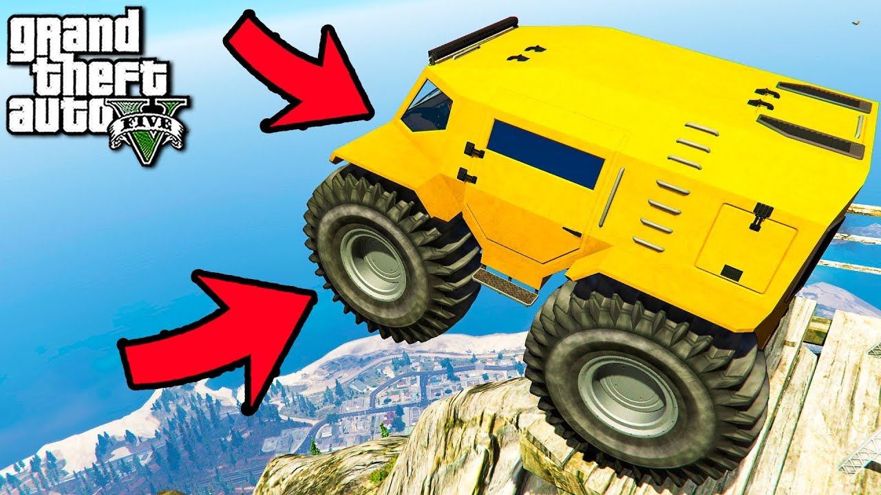 СПУСК БЕЗ ТОРМОЗОВ СМОЖЕТ ЛИ ВЕЗДЕХОД ПРОЛЕТЕТЬ ДАЛЬШЕ ВСЕХ В ГТА 5 МОДЫ ОБЗОР МОДА В GTA 5! ИГРЫ