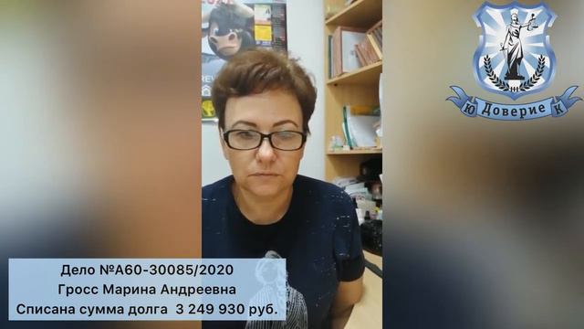 Банкротство физических лиц ЮК Доверие Списана сумма долга 3 249 930 руб. Видео отзыв Гросс М А