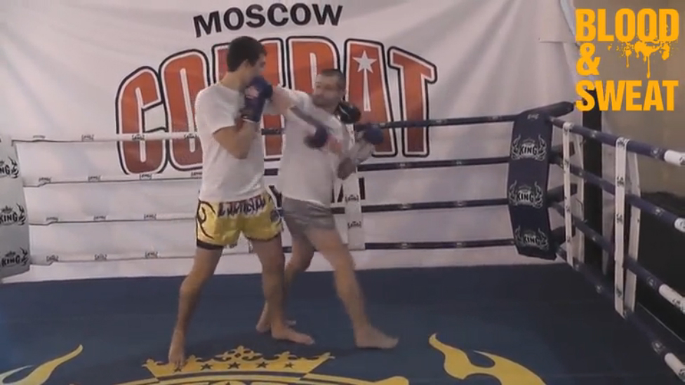 Специально для Blood&Sweat старший тренер московского клуба «Комбат» Роман Насонов продемонстрировал удар локтем с разворота из тайского бокса.