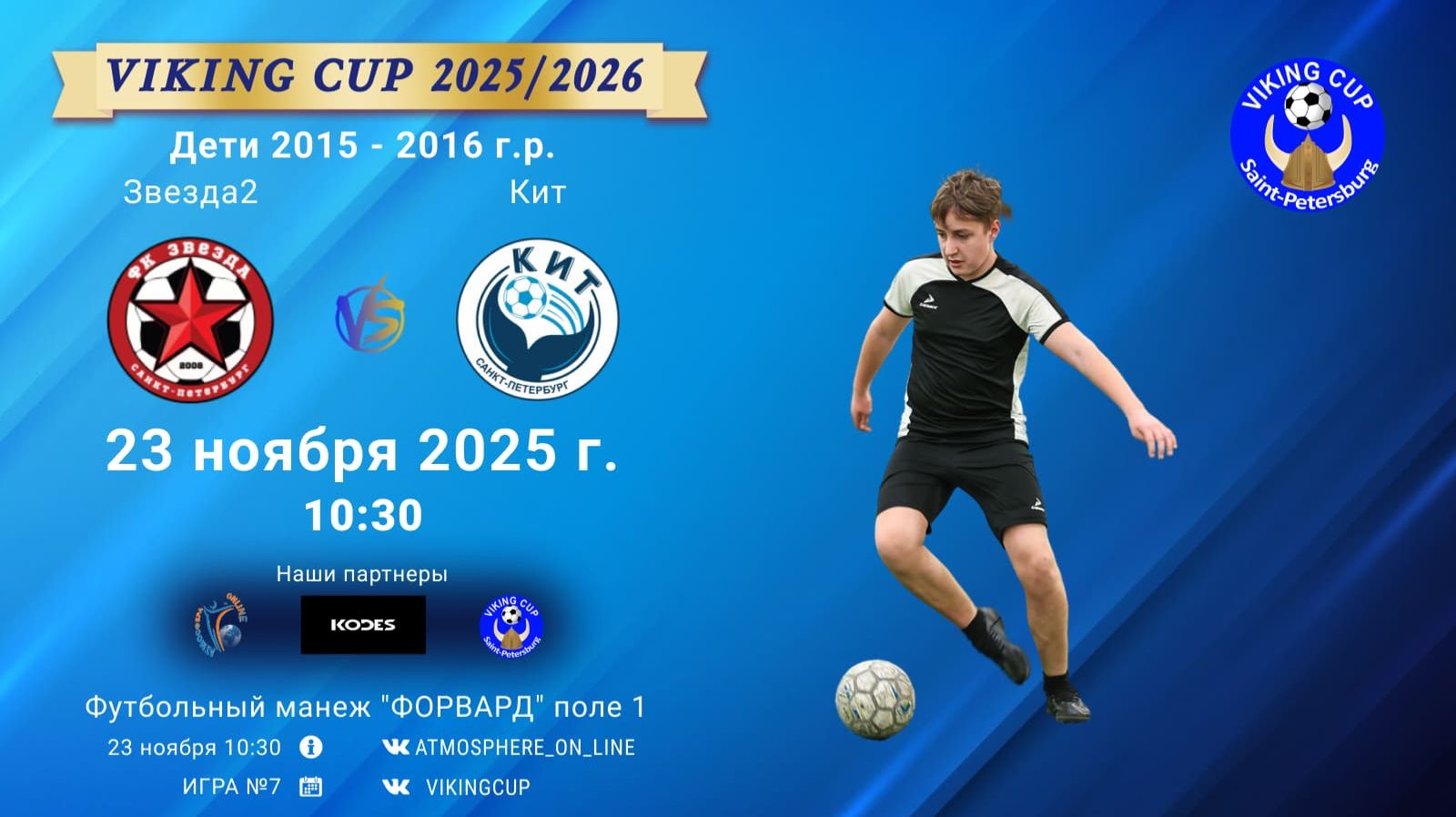 VIKING CUP среди команд 2015-2016 г.р. (U9-U10), Поле 1 23 ноября 2025 САНКТ-ПЕТЕРБУРГ, ФЦ "Форвард" ФК "Звезда2" - ФК "Кит"/VIKING CUP, Игра №7, 23-11-2025 10:30