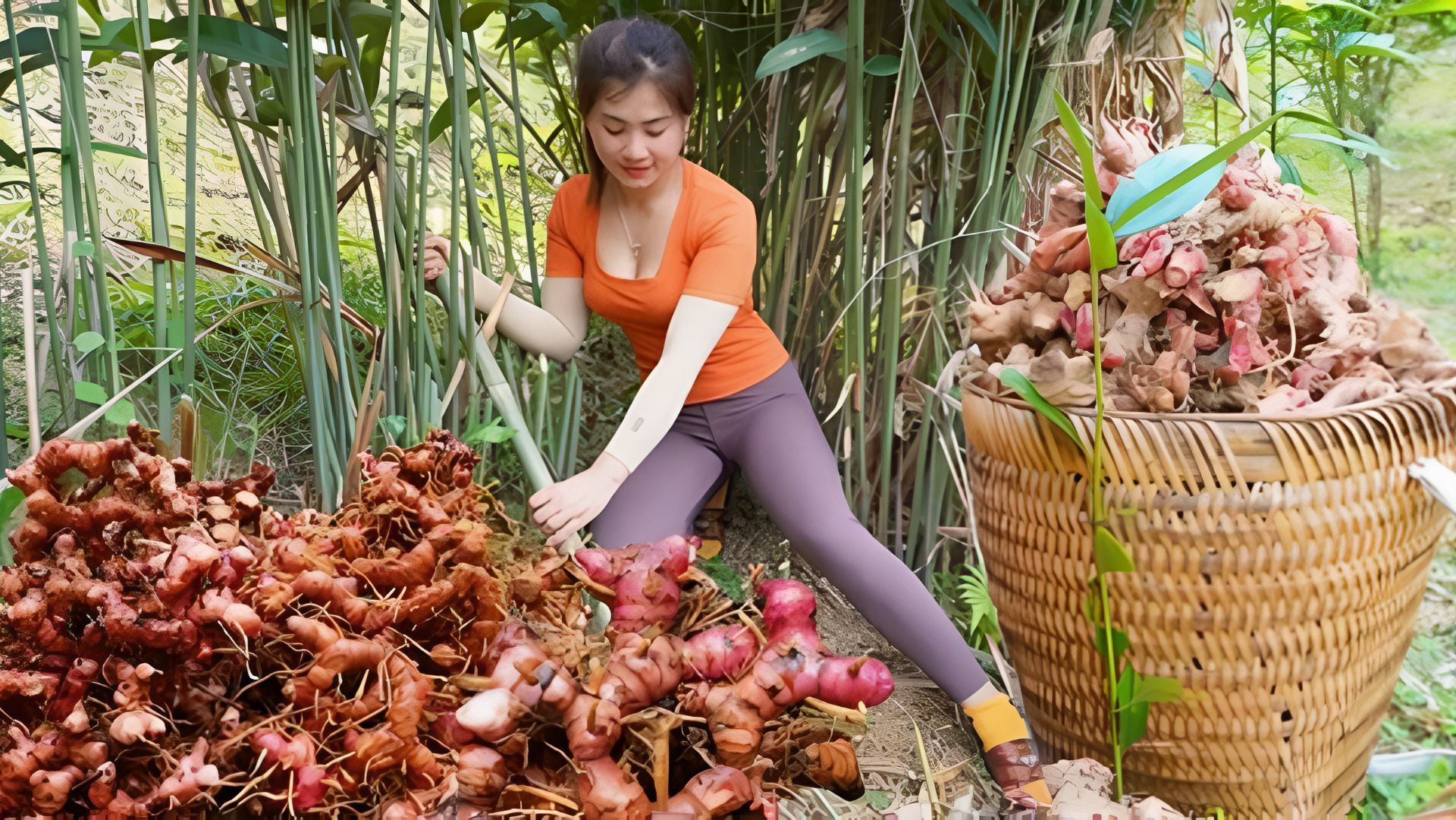 Сбор урожая с кустов галангала на продажу. Забочусь о поросятах, курицах и утках. Нхат. Вьетнам