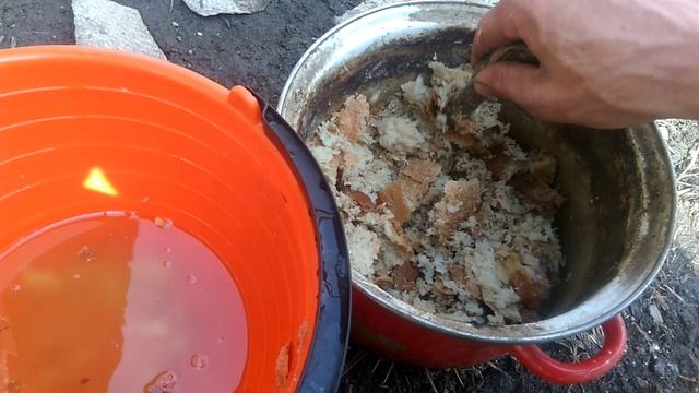 Обеденное время в деревне тоже не проходит даром. Нужно покормить хозяйство, а потом только кушать самому. Так я и делаю. Кур покормил мешанкой с витаминами. А собаку манной кашей. Все остались довольны.