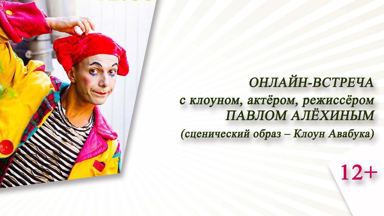 Гость нашего эфира – актёр, клоун, режиссёр Павел Алёхин (сценический образ – Клоун Авабука). Закончил Университет им. Н.И. Лобачевского (г. Нижний Новгород, филолог), Академию Искусств (г. Москва, режиссура пантомимы и пластического искусства). Участник Российских и зарубежных фестивалей пантомимы, танца и уличного театра: пантомимы «Белая Маска» (г. Москва), уличного искусства «Oreol» (Голландия), современного танца «TANZ WOCHE DRESDEN" (Германия), OPEN LOOK (г. Санкт-Петербург), арт-фестиваль «Sztuki Mimu» (Варшава), современной хореографии «Сила Безмолвия» (г. Санкт-Петербург), уличный фестиваль сказок на Желтой Мельнице и «БЕЛАЯ СВАДЬБА» Славы Полунина MAYFEST (Франция ). Является режиссером спектаклей: «Клоун Авабука», «Пьеро», «Корабли, Рыбы и Птицы». В 2015 году снялся в художественном фильме А. Кравчука «ВИКИНГ» (в роли Кобника). Павел участвовал в проектах театра DEREVO (СПб – Дрезден), а сейчас он артист Slava’s SNOW SHOW.