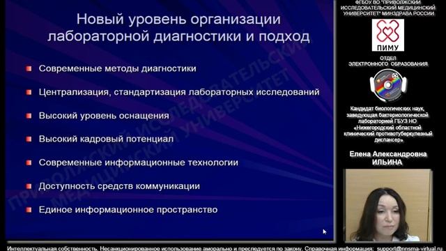 Лекция заведующей бактериологической лабораторией ГБУЗ НО «Нижегородского областного клинического противотуберкулёзного диспансера», к.б.н. Ильиной Елены Александровны.