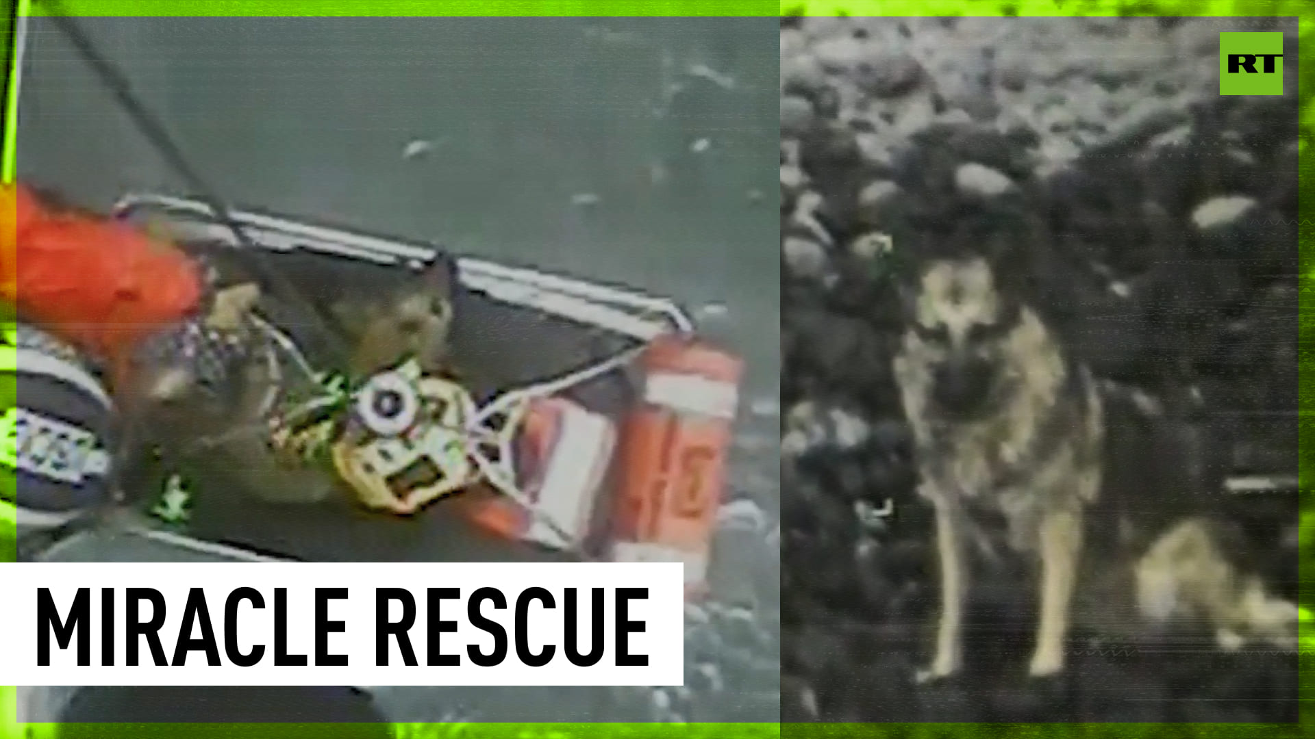 A lucky German shepherd dog was rescued by the Coast Guard after falling off a 90-meter cliff onto an Oregon beach. The dog was walking with her owner in Ecola State Park when she slipped and took a tumble off the cliff, but, miraculously, she survived. Slight problem: the beach she landed on was only accessible by falling off said cliff. Enter the Coast Guard air rescue squad. A rescuer dangled off an MH-60 Jayhawk helicopter and descended onto the beach, scrambled up the harsh rocky shoreline, scooped up the dog and brought her back, in a dramatic rescue captured on what appears to be a 90s camcorder. The very good girl was reunited with her owner and taken to the vet. Despite the significant fall, the dog was in remarkably good health and is expected to make a full recovery. ------------------------------------------------------------------------------------- Freedom over censorship, truth over narrative. Follow us on Facebook: https://www.facebook.com/RTnews Follow us on Telegram: https://t.me/rtnews Follow us on Twitter: https://twitter.com/RT_com