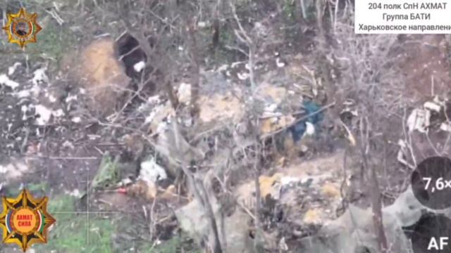 Профессиональная работа операторов БпЛА и миномётного (120 мм) расчёта: уничтожение блиндажа и огневой точки с живой силой противника на харьковском направлении. Группа "Бати" спецназа "АХМАТ" МО РФ.