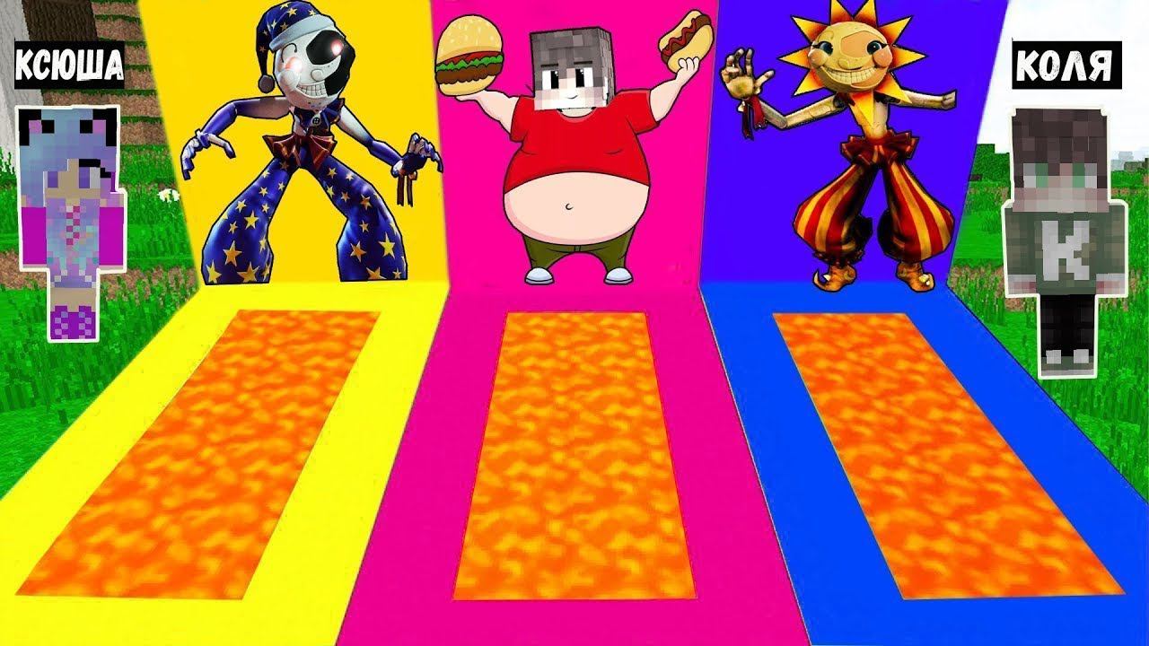 Я И ДЕВУШКА ВЫБЕРИ ПРАВИЛЬНЫЙ ЛАВОВЫЙ ПОДВАЛ АНИМАТРОНИКИ СОЛНЦЕ И ЛУНА ТОЛСТЫЙ КОЛЯ В МАЙНКРАФТ