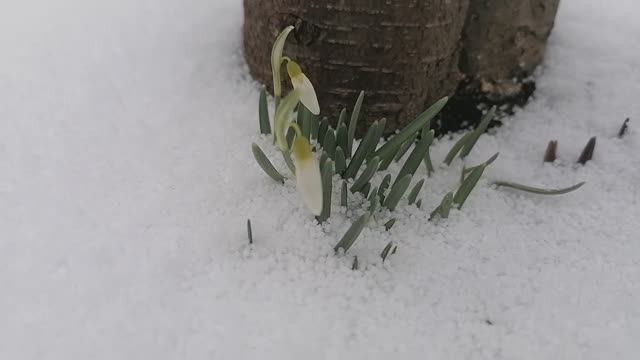 Подснежники под снегом 03.04.2022. дача в Подмосковье.