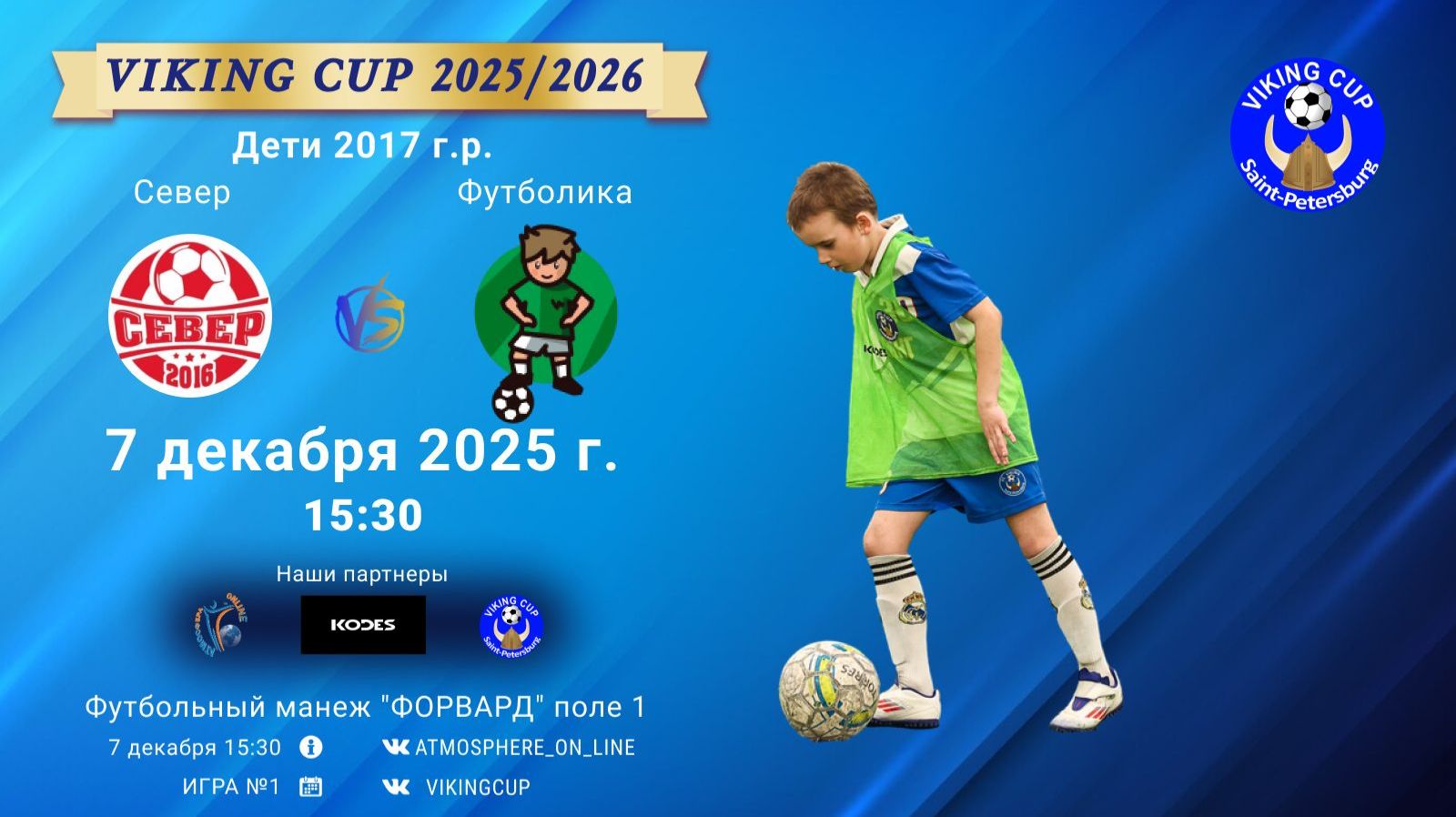 VIKING CUP среди команд 2017 г.р. (U8), Поле 1 7 декабря 2025 САНКТ-ПЕТЕРБУРГ, ФЦ "Форвард" ФК "Север" - ФК "Футболика"/VIKING CUP, Игра №1, 07-12-2025 15:30