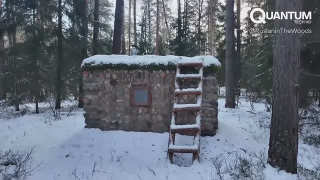 Мужчина строит 2-комнатную бревенчатую хижину под землей