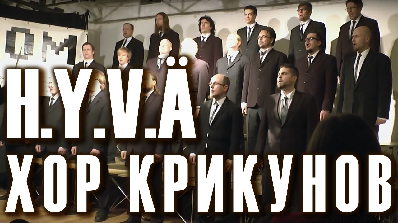 «H.Y.V.Ä». Песня из одноимённого альбома 1994 года. Written: Petri Sirviö (слова Петри Сирвио), музыка неизвестного автора. Хор финских крикунов «Mieskuoro Huutajat» (Screaming Men choir of Oulu, Finland). Фрагмент концерта хора финских крикунов (хора орущих финских парней) «Mieskuoro Huutajat» в Москве в Культурном центре «Дом» ( http://dom.com.ru ), 24 ноября 2012 года. Официальный сайт хора «Mieskuoro Huutajat» из Финляндии: http://www.huutajat.org/ Аудио и видео концерта: «РЕТРОпортал.ру» https://www.retroportal.ru/