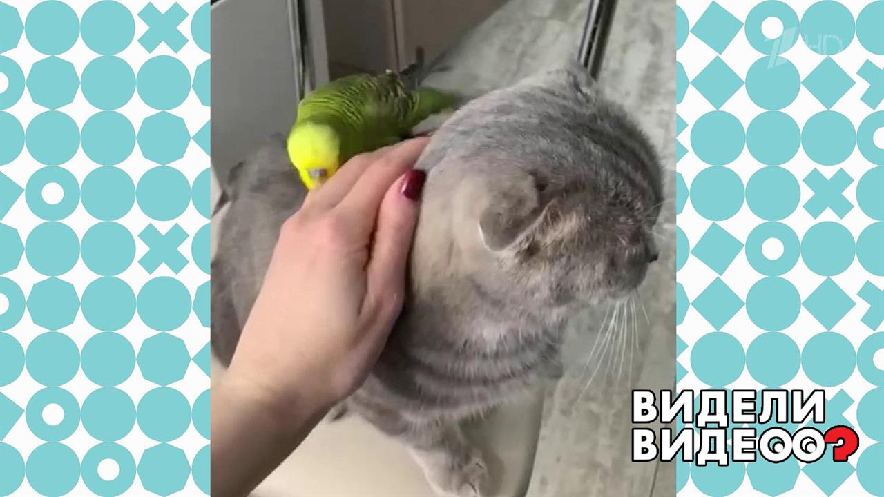 Попугай Гоша ревнует кота Деню к своей хозяйке.