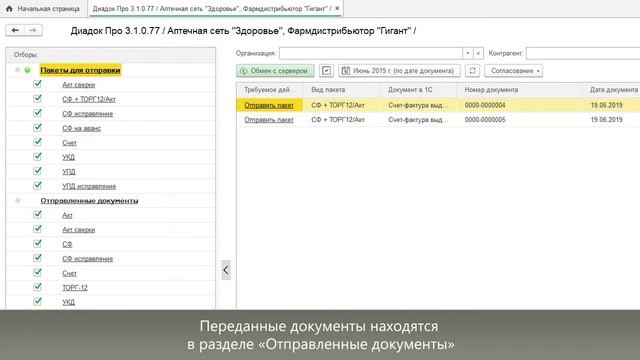 Модуль ДиадокПро для 1С. Отправка документов