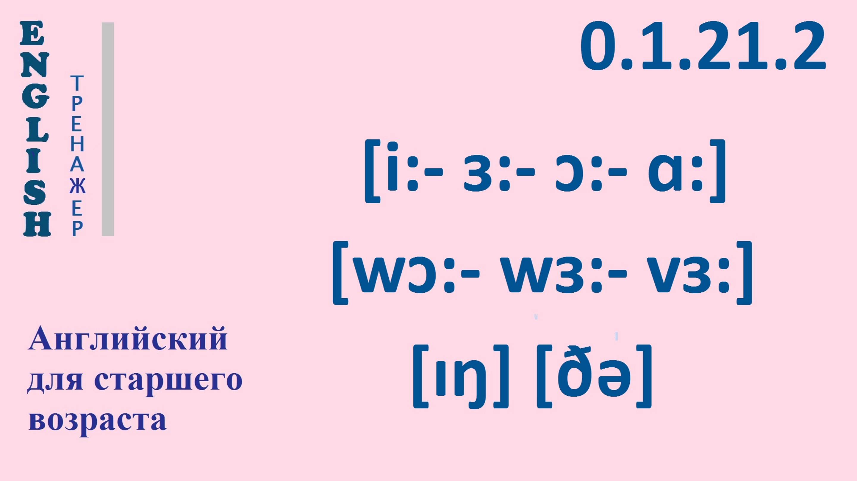 ТРЕНАЖЕР 0.1.21.2 Фонетические упражнения [ i: - ɜ: - ɔ: - ɑ: ], [ɪŋ], [wɔ: - wɜ: - vɜ: ], [ðə] Английский English