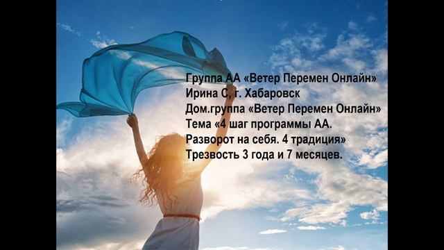 Ирина С. г. Хабаровск. Тема "4 шаг программы АА. Разворот на себя. 4 традиция".