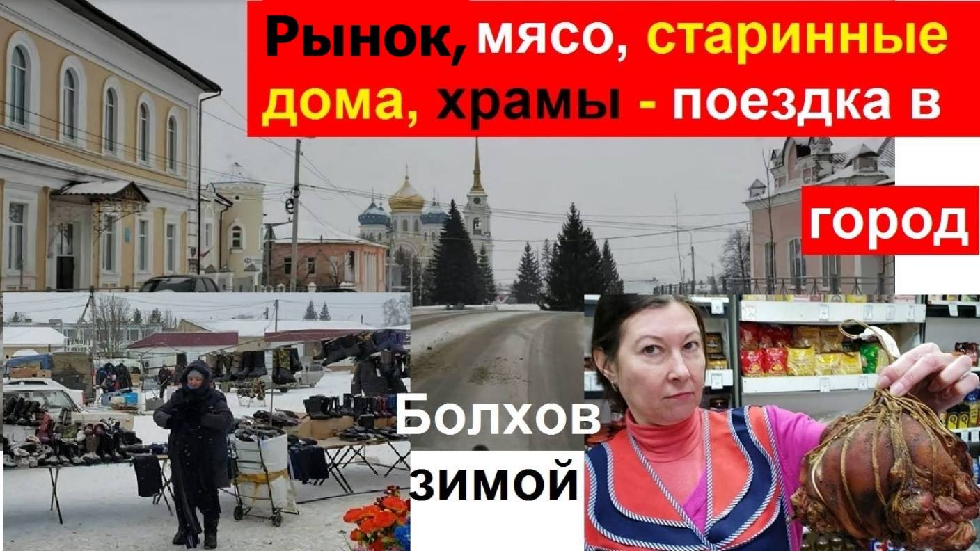 241214 Поездка в зимний город Болхов Орловская область зимой Рулька свиная Цена Колбаса Базар Рынок