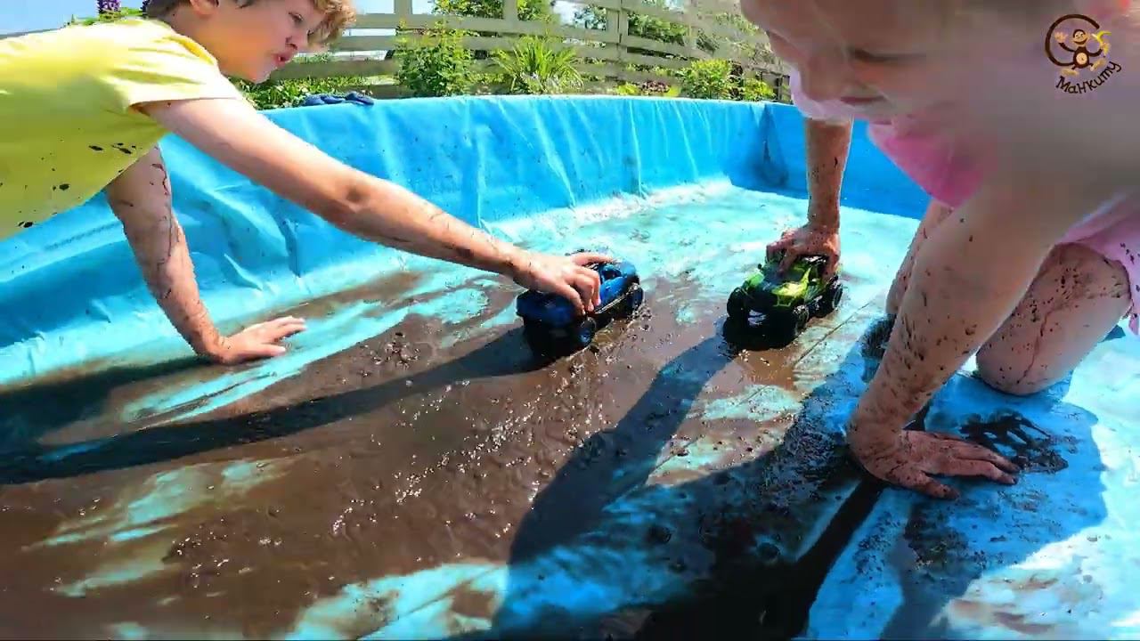Дети и Машина. Чистим бассейн и играем машинками. Манкиту