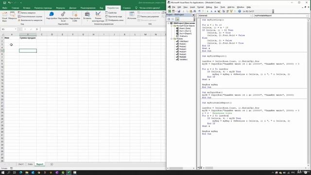 Объявление или настройка листов часть 1. Основы циклов и отчётов. Программирование макросов в Excel.