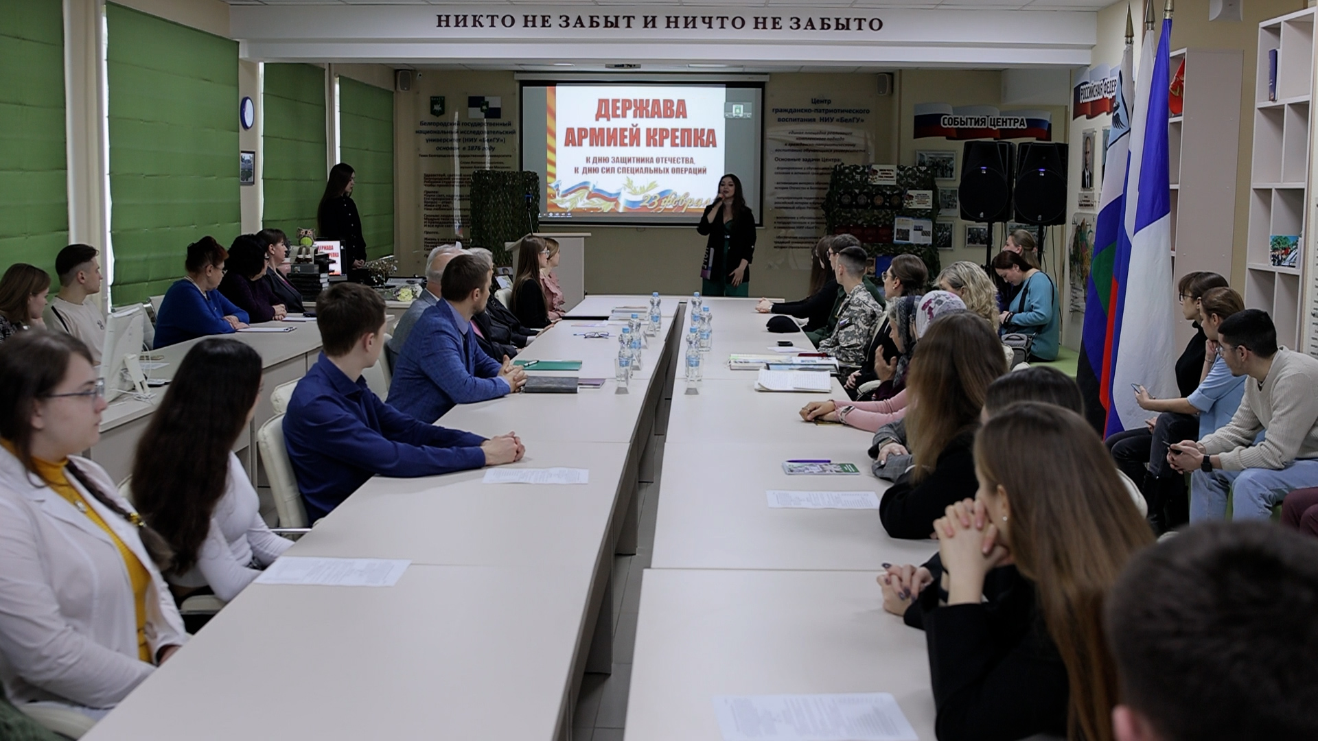 Преподаватели, студенты, активисты Центра волонтёрского движения «ДоброТворец» и представители Совета ветеранов войны и труда университета встретились с обучающимися медицинского института, участниками специальной военной операции Владимиром Горбенко и Данилой Борисовым, а также с родными погибшего в зоне СВО военнослужащего – выпускника историко-филологического факультета НИУ «БелГУ» Сергея Панченко.