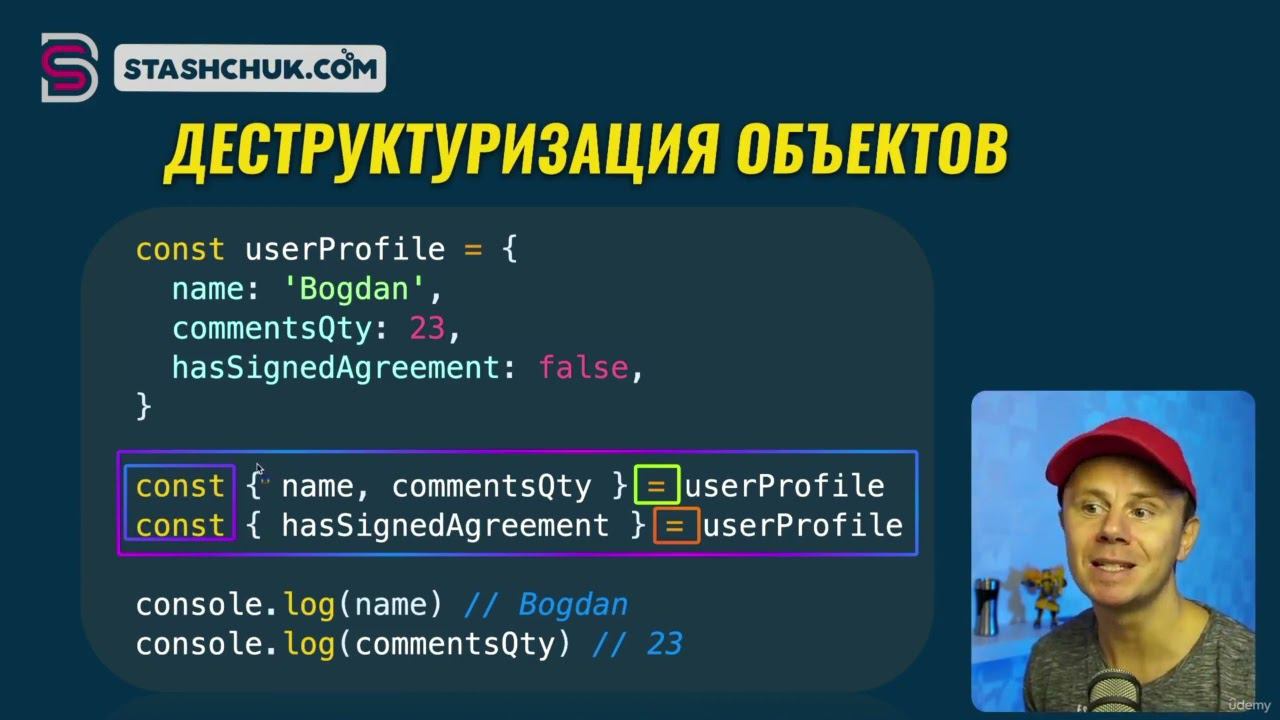 Деструктуризация в JavaScipt позволяет присвоить значения переменным в одной строке. Вы мотивируете выкладывать больше полезного контента, когда поддерживаете канал: https://boosty.to/worcel/donate Поддержите канал, сделайте заказ по ссылке: Викиум – это онлайн-платформа для тренировки памяти, внимания и мышления - https://is.gd/OguZll GeekBrains — это образовательная экосистема. В ней любой человек с нуля может освоить профессию в области программирования, маркетинга, управления и дизайна и гарантированно найти работу - https://is.gd/RPBEDS Skypro — онлайн-университет рентабельного образования. Учим IT-профессиям с нуля и гарантируем новую работу - https://is.gd/0GXfNR Знанио — ведущий портал дополнительного образования для взрослых и детей - https://is.gd/E5Ess3 Zaochnik — крупнейший образовательный сервис для студентов, работает с 2000 года, от контрольных и рефератов до диссертаций - https://is.gd/jk9930 Напишем - напишут всё что нужно - https://is.gd/Ebj6ov Алгоритмика — международная школа программирования и математики для детей от 6 до 17 лет - https://is.gd/NNmiHL Тетрика — это команда опытных репетиторов, со специалистами по любому предмету с 1 по 11 класс, английский для взрослых и удобная интерактивная платформа для онлайн-уроков - https://is.gd/brw69z #java #javascript