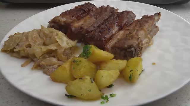 Вкусный ужин !Рёбрышки свинины с овощами