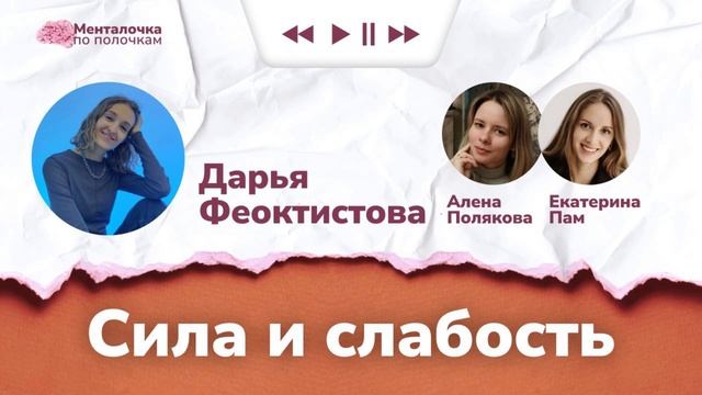Подписывайтесь на телеграм-канал "Менталочка по полочкам": https://t.me/mentalochka_daily В этом выпуске: ⏺️Вместе с Дарьей Феоктистовой (https://t.me/mentalochka_daily/1386) обсудили такие понятия, как сила и слабость; ⏺️Поговорили о том, как с этими понятиями связана уязвимость; ⏺️Обсудили причины "мнимой" силы. Мы есть в социальных сетях: ►Телеграм: https://t.me/mentalochka_daily ►Дзен: https://dzen.ru/mentalochka_daily ►ВК: https://vk.com/mentalochka_daily