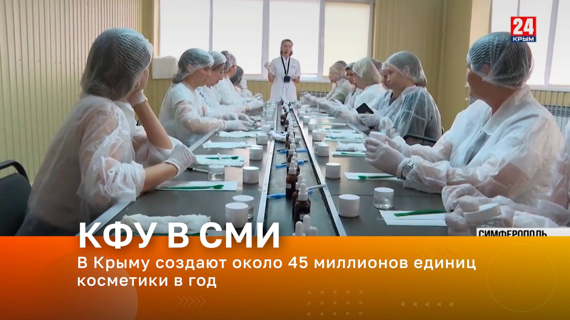 Телеканал «Крым 24». В эфире – студентка Агротехнологической академии КФУ им. В.И. Вернадского Валентина Велийчук Тема эфира - Около 45 миллионов единиц декоративной, уходовой и лечебной косметики изготавливают за год в Крыму. Таких результатов удалось добиться за 6 лет развития отрасли. В республике планируют создать промышленный кластер для местных производителей, а в вузах – разработать программу для подготовки дипломированных специалистов.