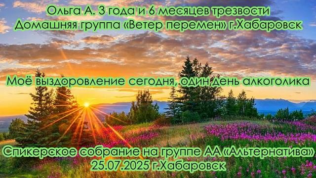 Ольга А. 3 года и 6 месяцев трезвости. Домашняя группа «Ветер перемен» г.Хабаровск