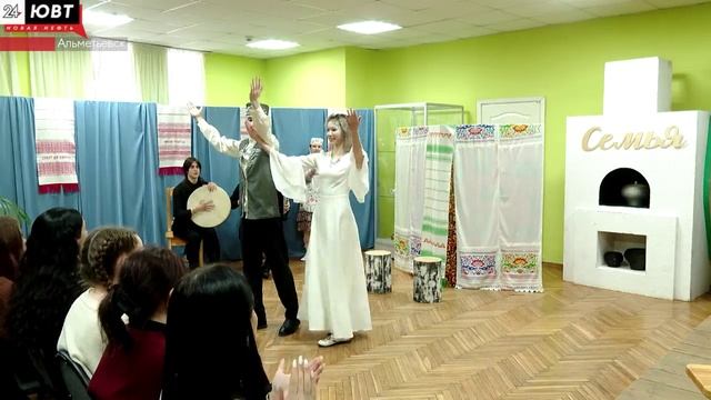 «Ак елан» – это название новой постановки студентов-народников музыкального колледжа. Ребята выступают в краеведческом музее в рамках проекта «Венок дружбы». Среди зрителей студенты другого колледжа.