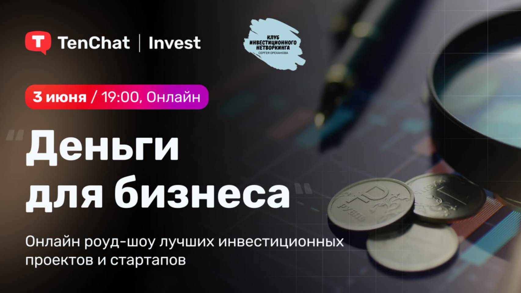 Ежемесячная питч-сессия от крупнейшей соцсети для деловых знакомств в России и СНГ TenChat при участии ведущих инвестиционных сообществ РФ. Место встречи компаний, заинтересованных в привлечении инвестиций для развития бизнеса, фаундеров стартапов и реальных инвесторов, нацеленных на выгодные инвестиции. ✅ Презентации представленных проектов: https://drive.google.com/drive/folders/1b8pkPfcfAcnMZR_lwyUBnwUhFvYqsrou?usp=drive_link ✅ Если вы хотите представить свой проект на следующем Роуд-шоу, заполните анкету: https://teletype.in/@ser.or/ksprGTuoGq7 ___________ 🔊 Основной TG-канал Клуба: новости, анонсы, инсайты, видео-чаты с инвесторами https://t.me/aboutinvestment 🔊 TG-канал "Федеральная база инвестиционных проектов". Канал для инвесторов с качественной базой проектов https://teletype.in/@ser.or/RiTOrGlcAdm 🔊 TG-канал "Отобранные проекты для инвесторов" https://t.me/bestofprojects 🔊 Канал "TenChat Invest | Проекты" https://tenchat.ru/invest-startup 📲 По всем вопросам: 939255@mail.ru